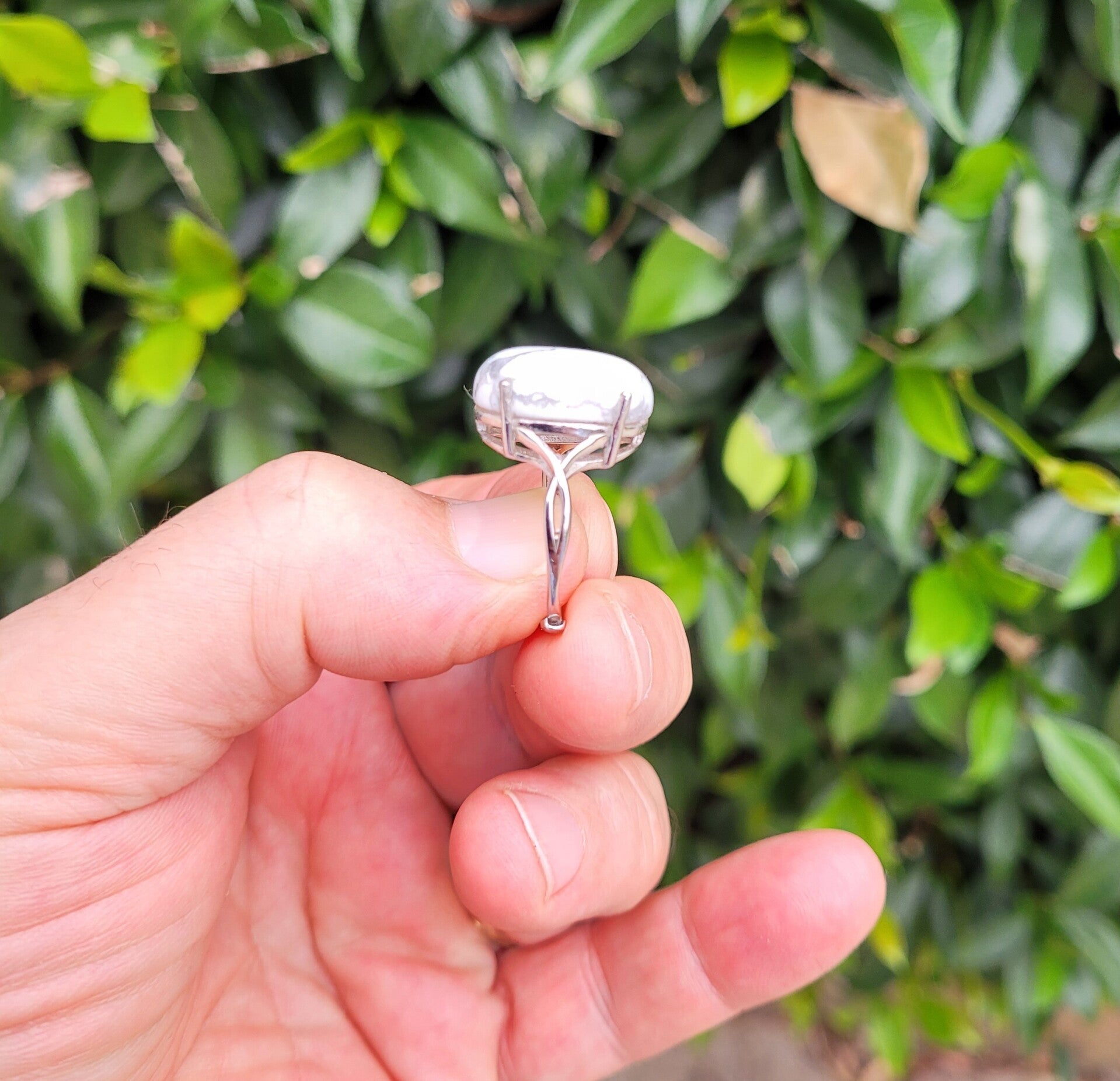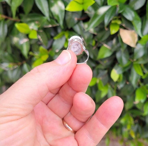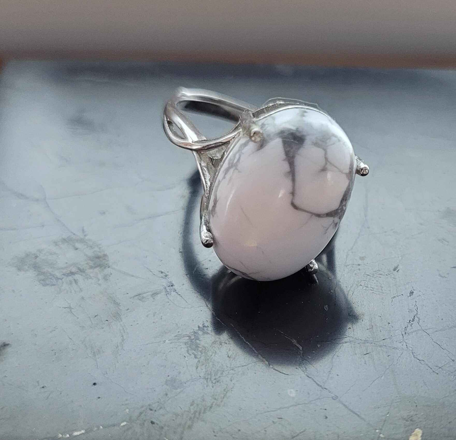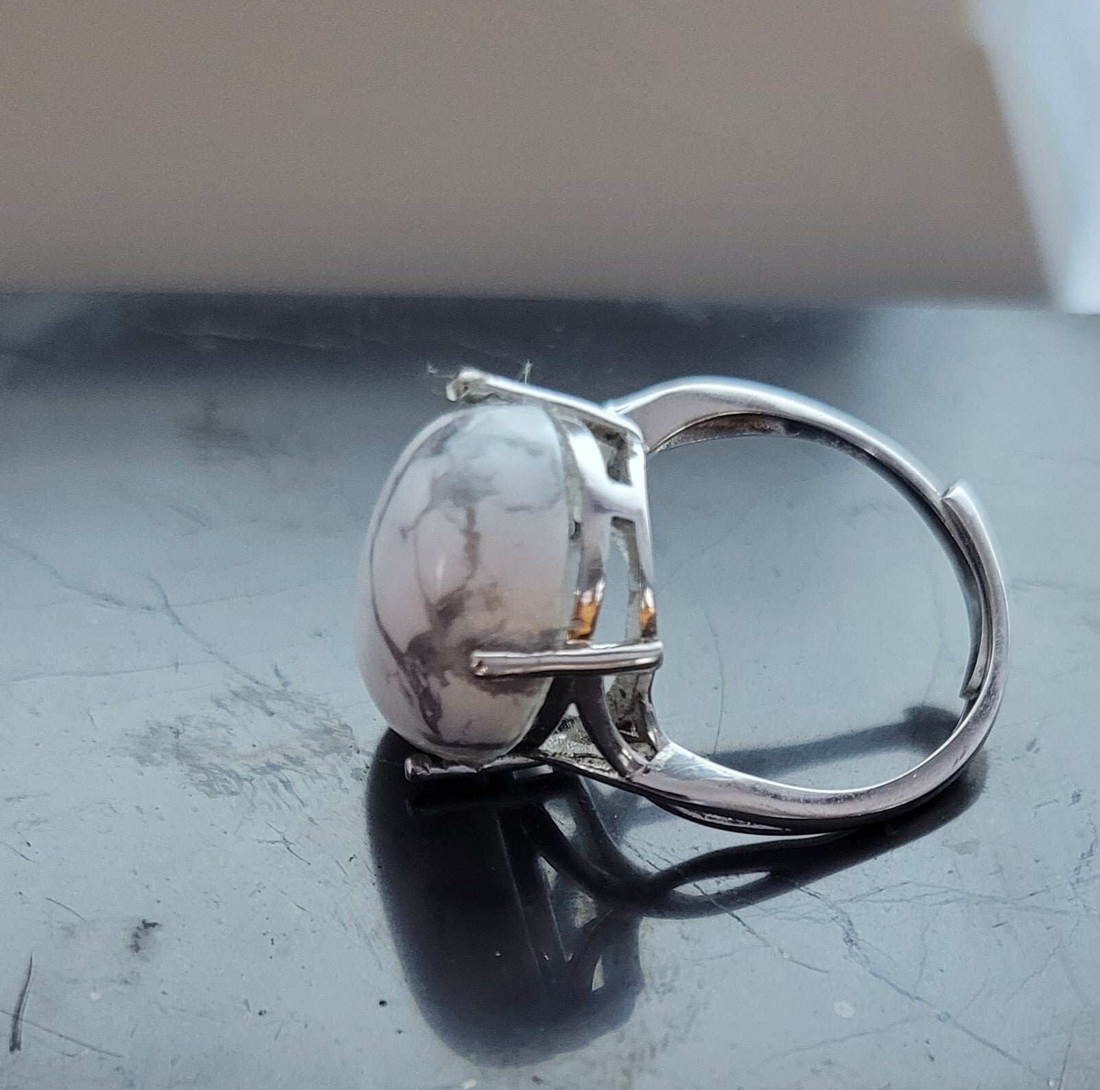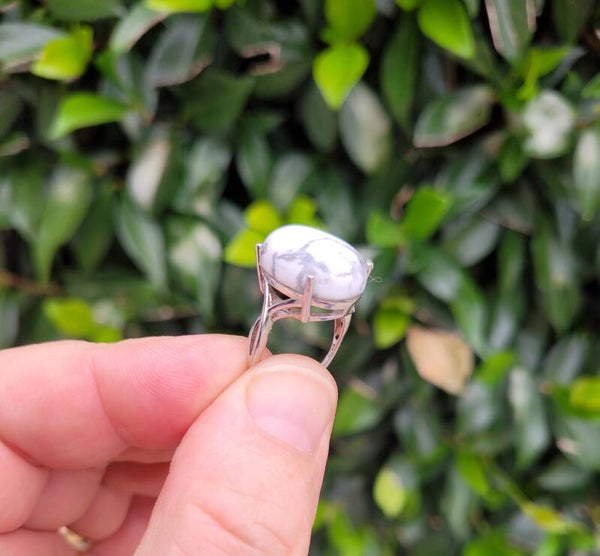 Bague howlite Argent 925 montée d'une pierre naturelle d'Howlite