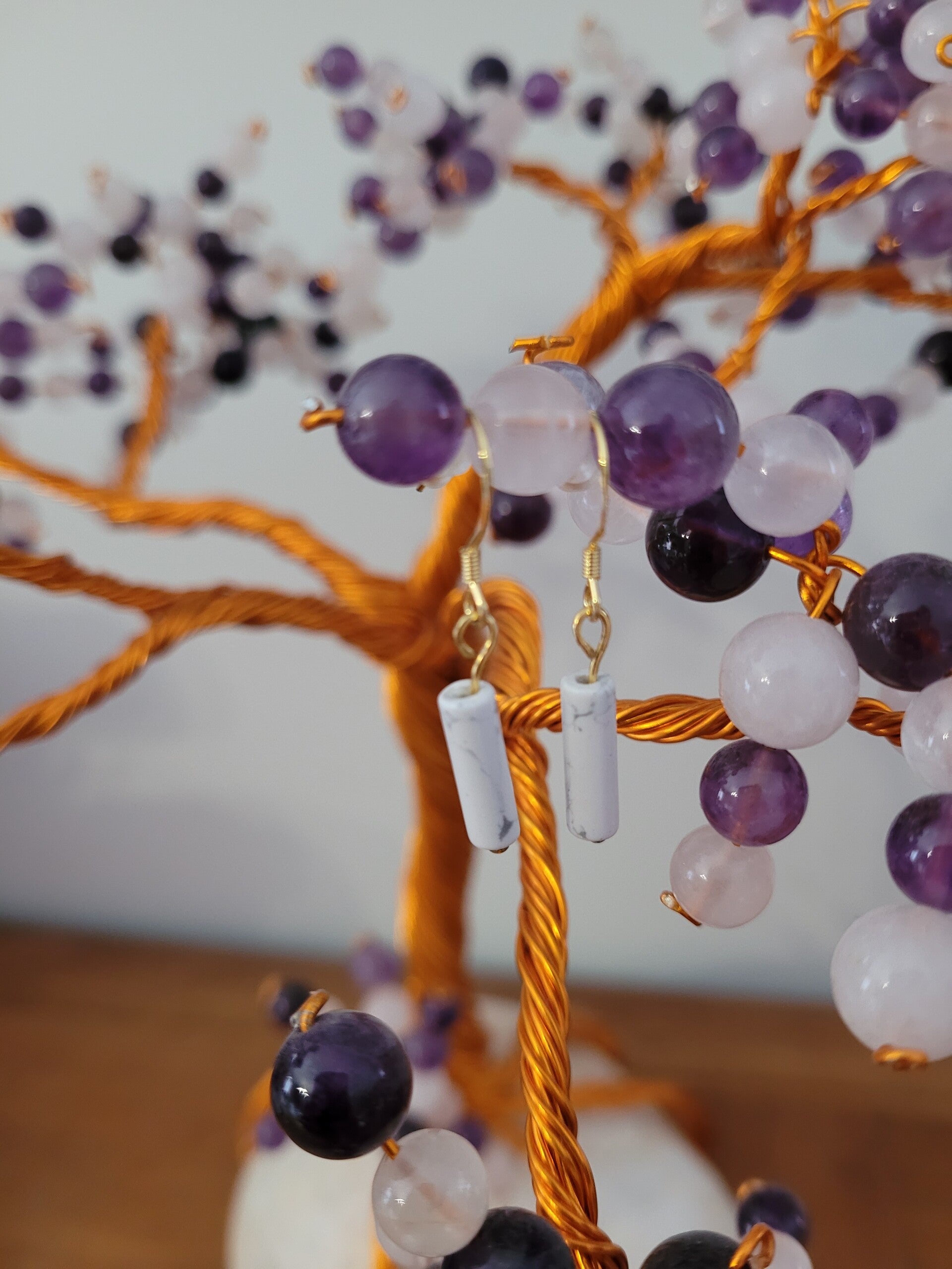 Paire de boucles d'oreille Howlite en pierre naturelle