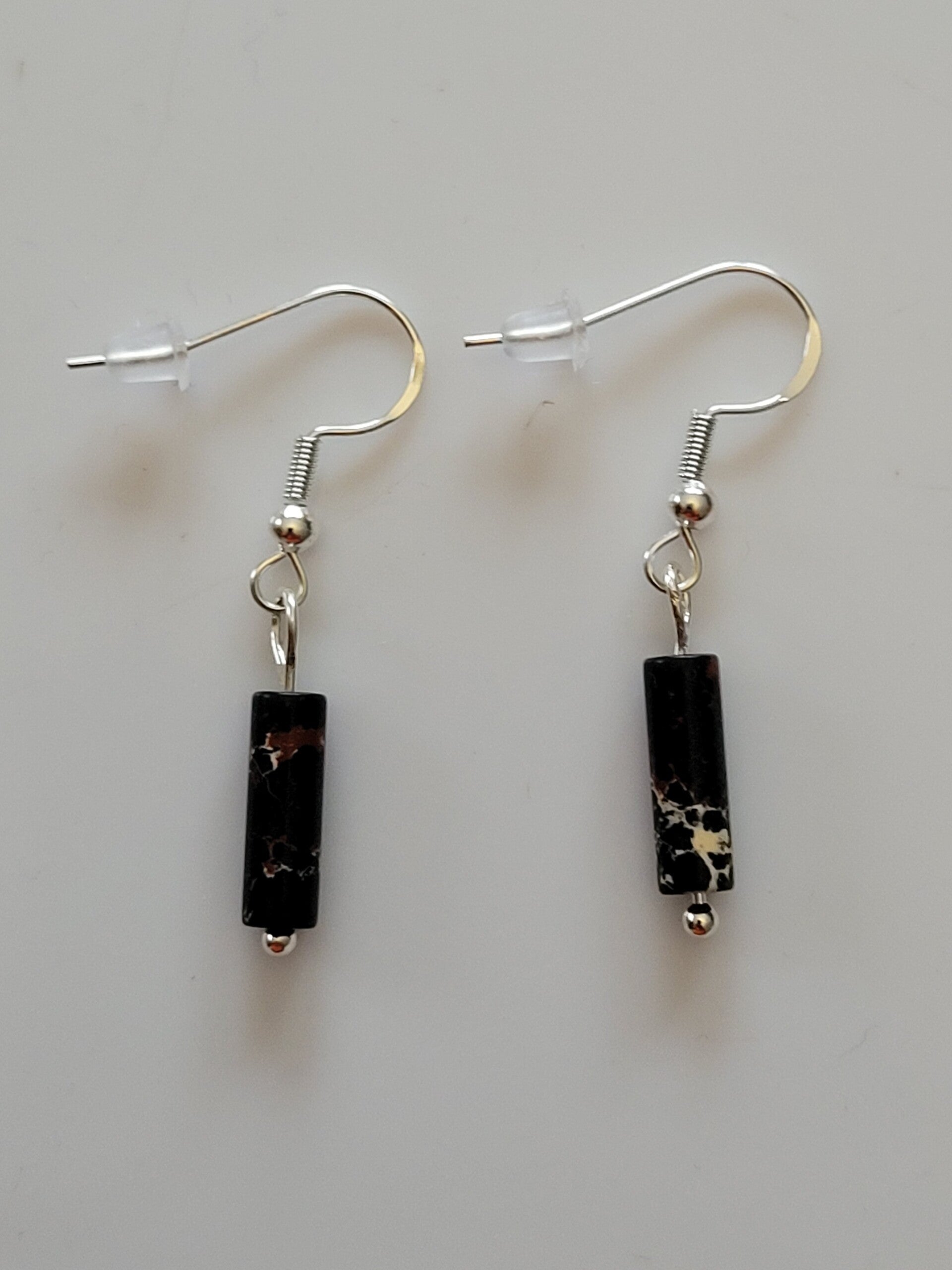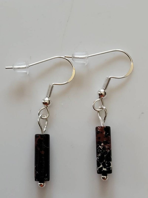 Paire de boucles d'oreilles Agate noire ( tube ).