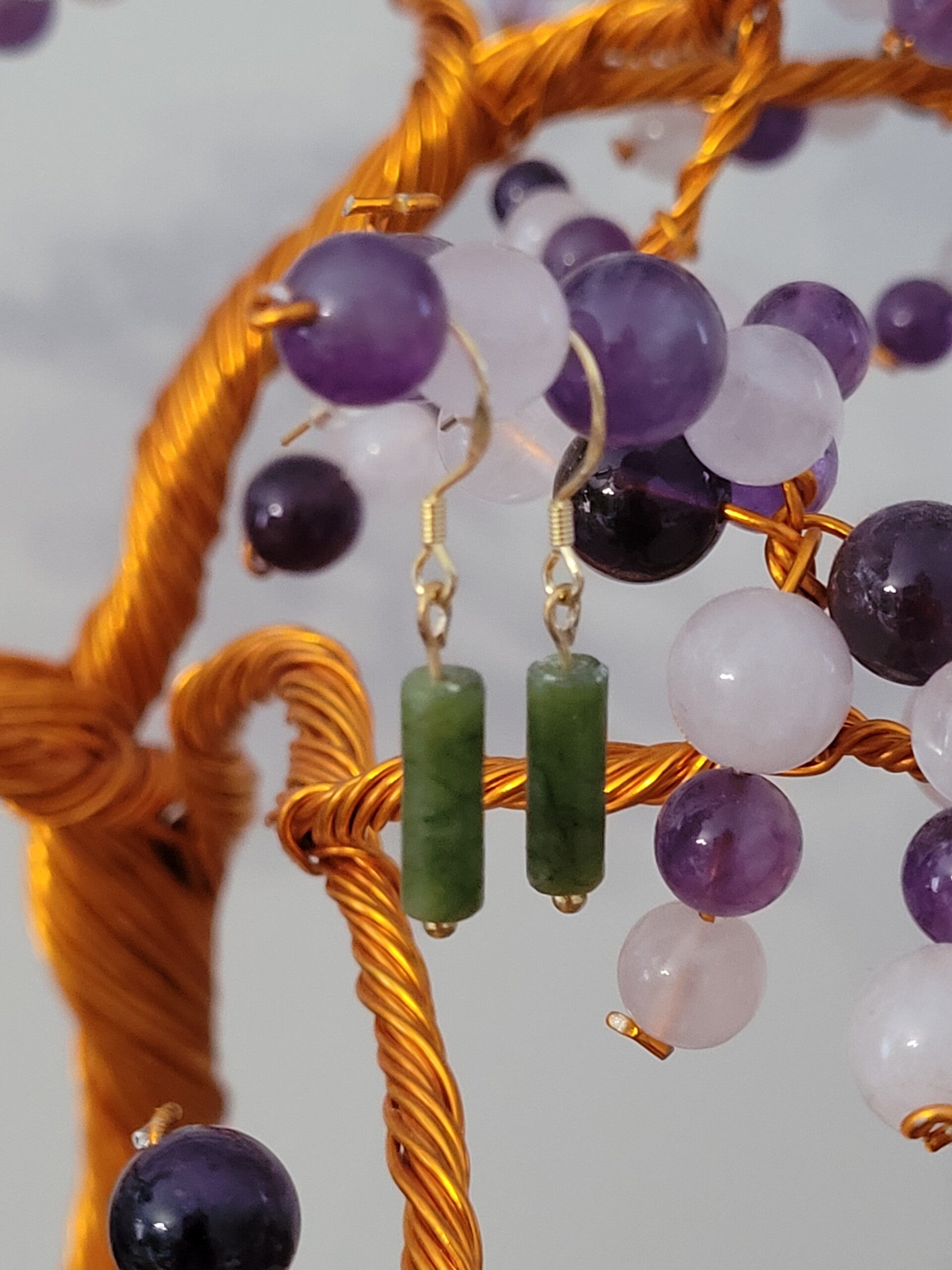 Paire de boucles d'oreilles jade vert ( tube ).