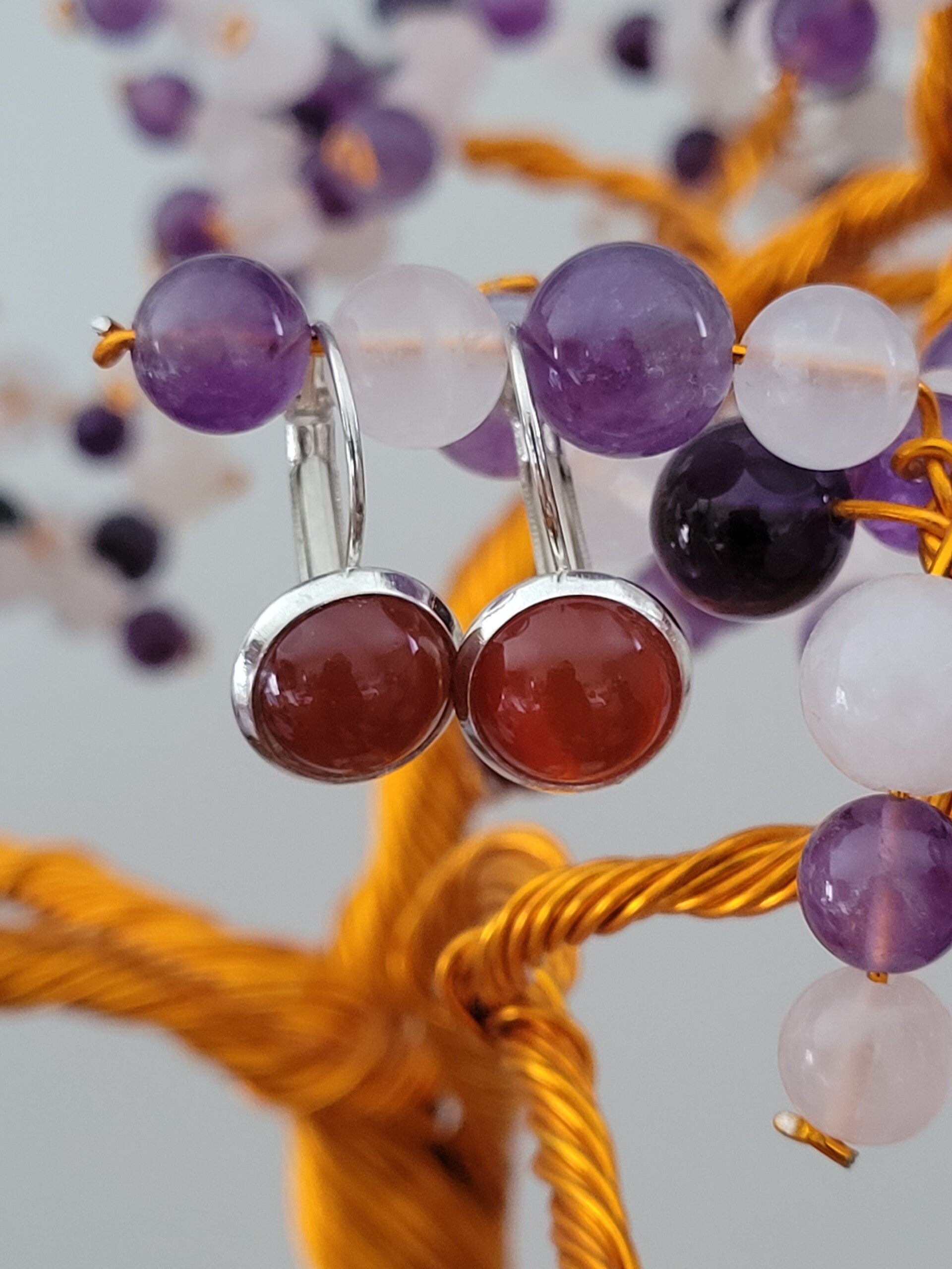 Boucles d'oreilles Cornaline dormeuse argent 925