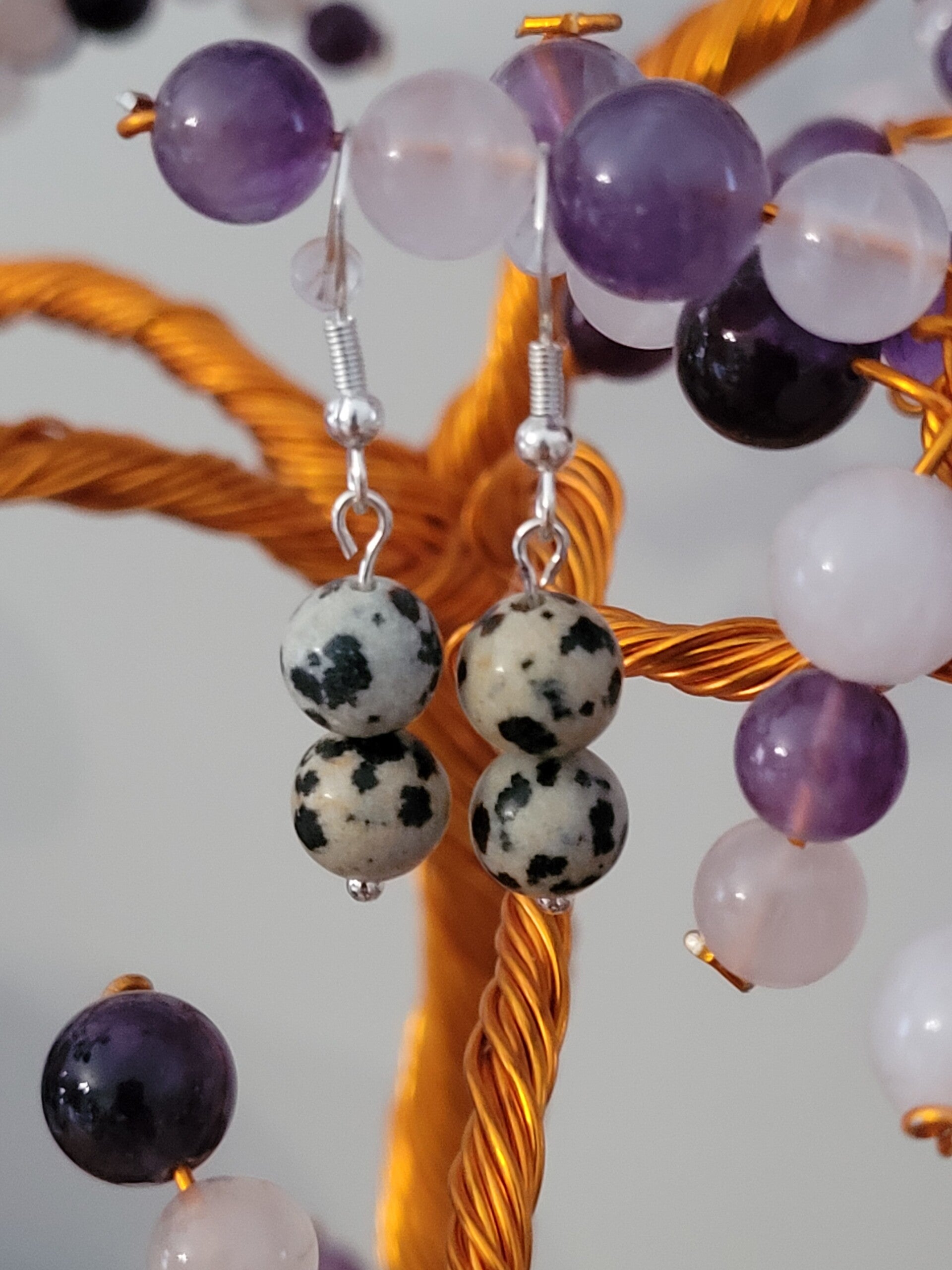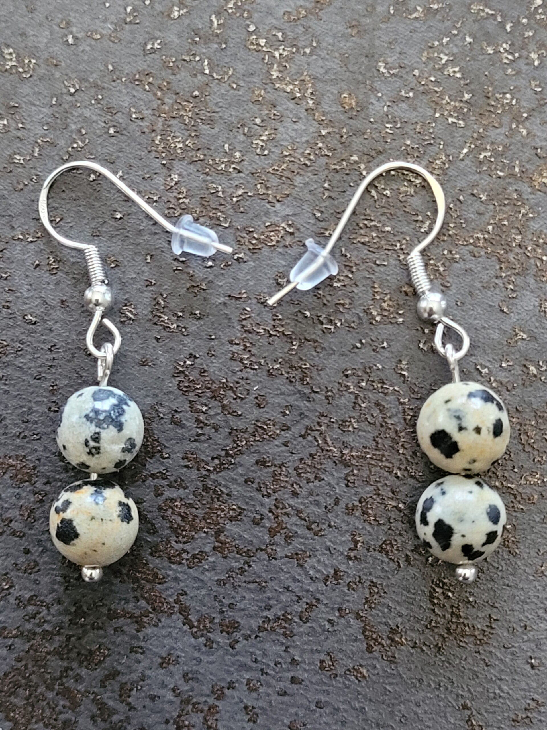 Paire de Boucles d'oreilles Jaspe Dalmatien ( perles )