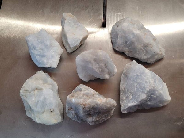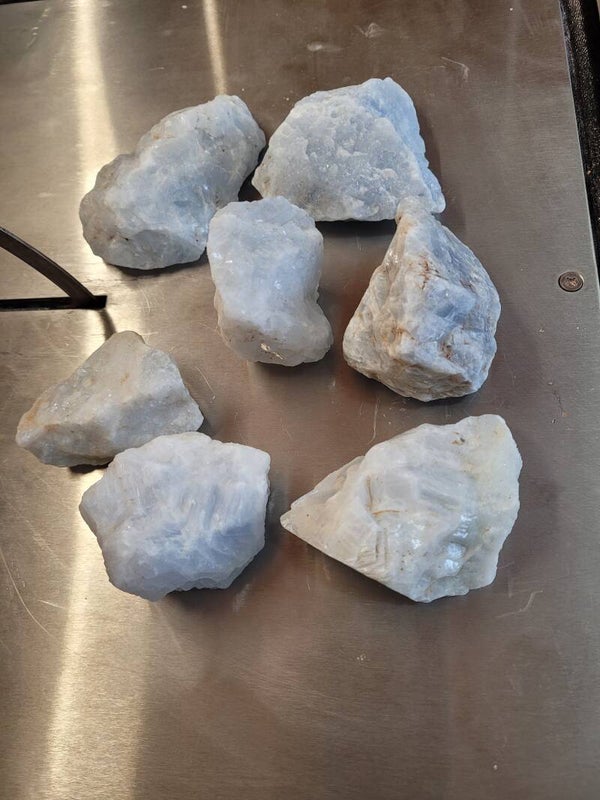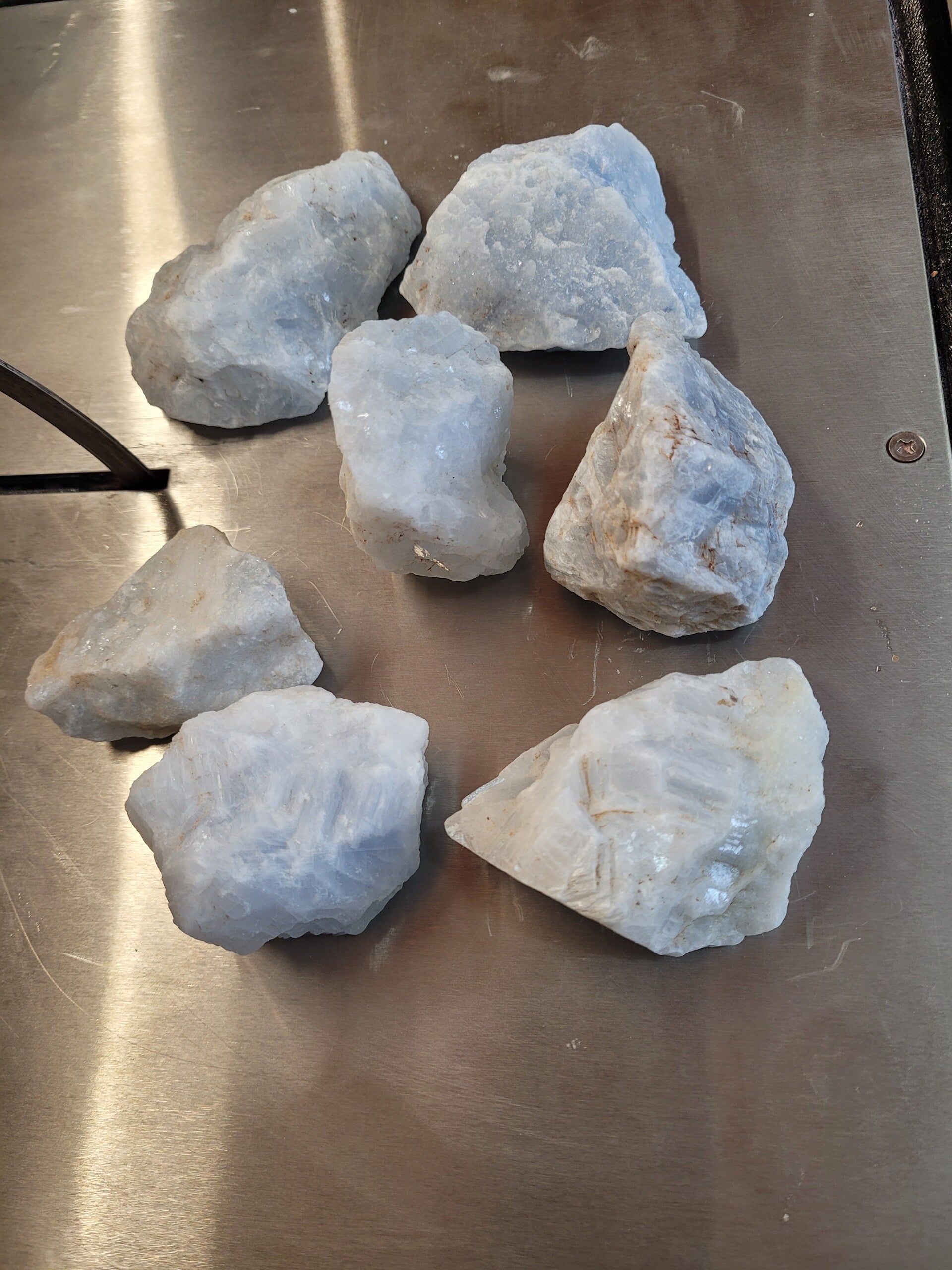 Pierre brute en Calcite Bleue ( 7pierres de calcite bleue pâle)