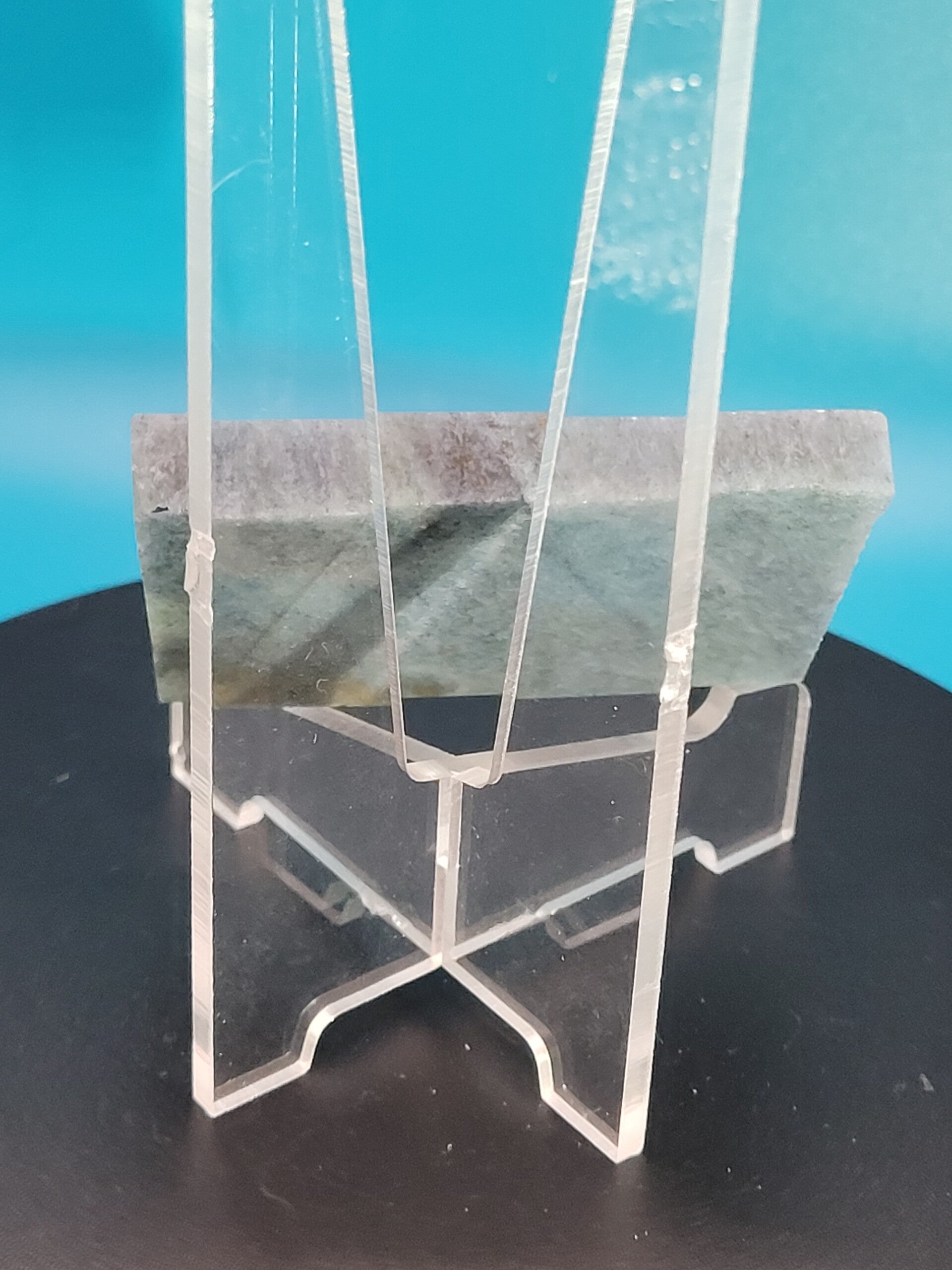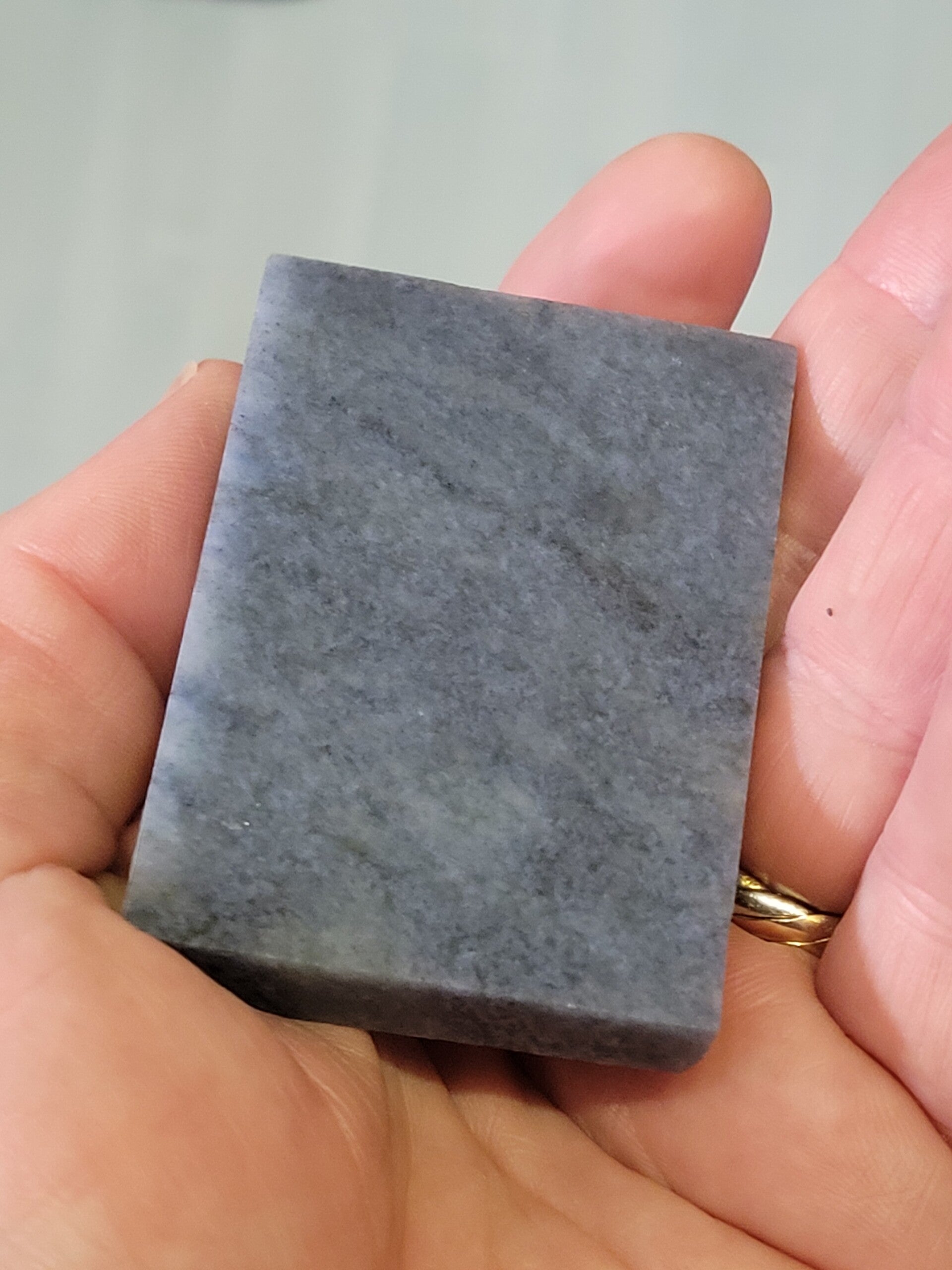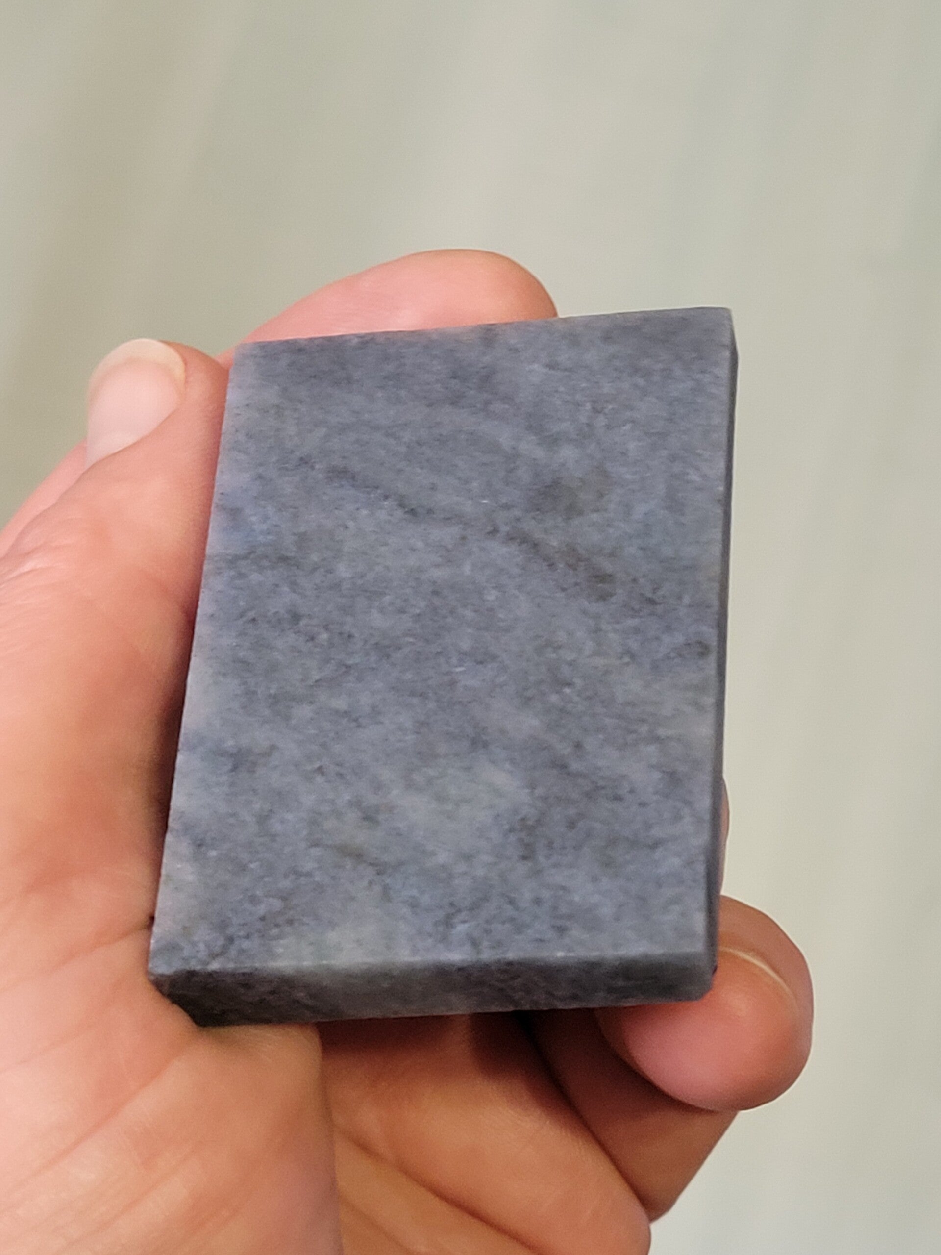 Quartz bleu gris bloc brut avec toutes les faces coupées .