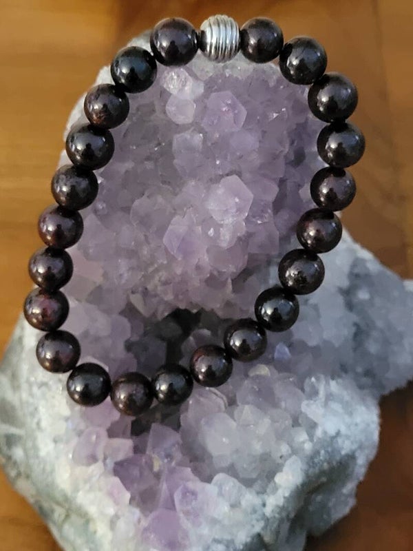 Bracelet de Grenat Pyrope 8 mm ,une perle en acier inoxidable (Tour de poignet de 18.5 à 19.5 environ)