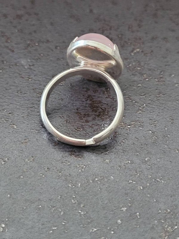 Bague ajustable en Argent925 montée d'une pierre de Quartz Rose sur plateau cabochon de 13mm sur 18mm (13*18)