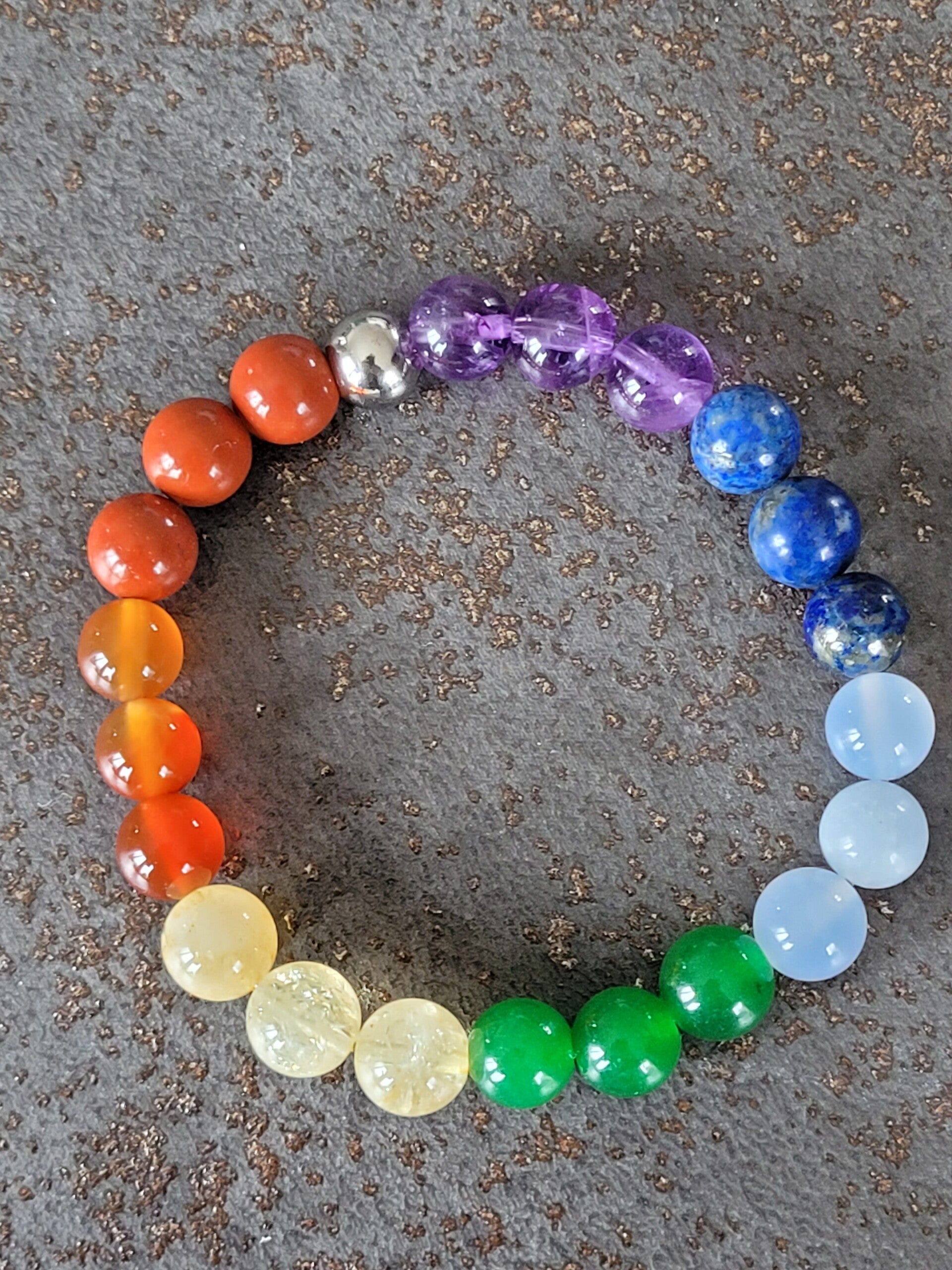 1 Bracelet de 21 perles 7 Chakra 8 mm en pierre naturelle et une perle en acier inoxydable.
