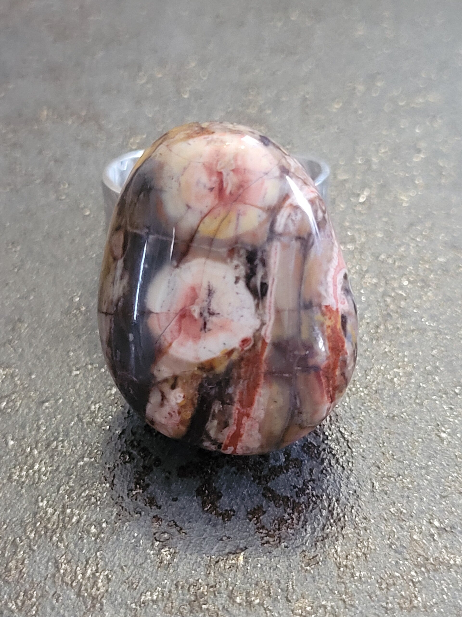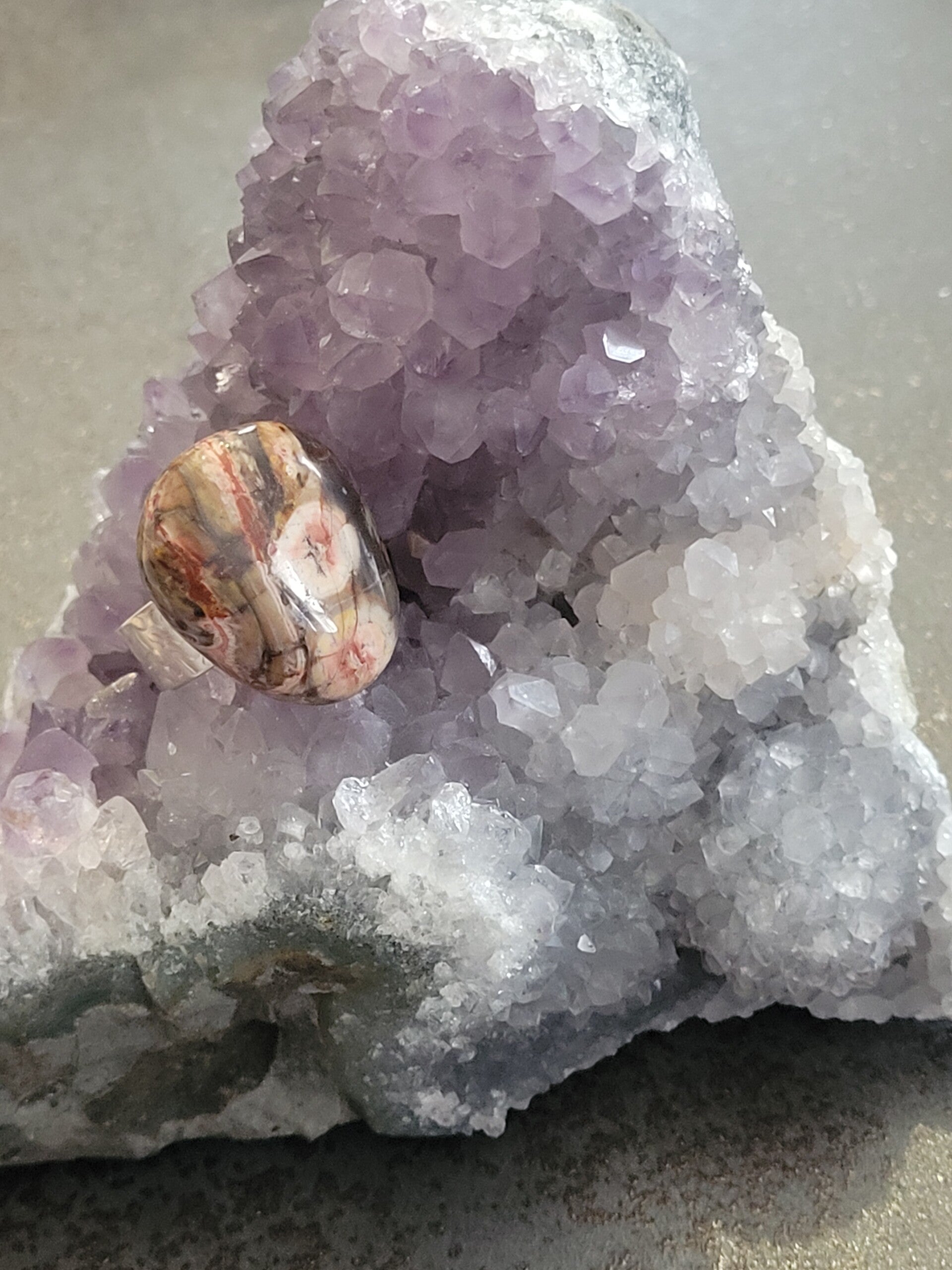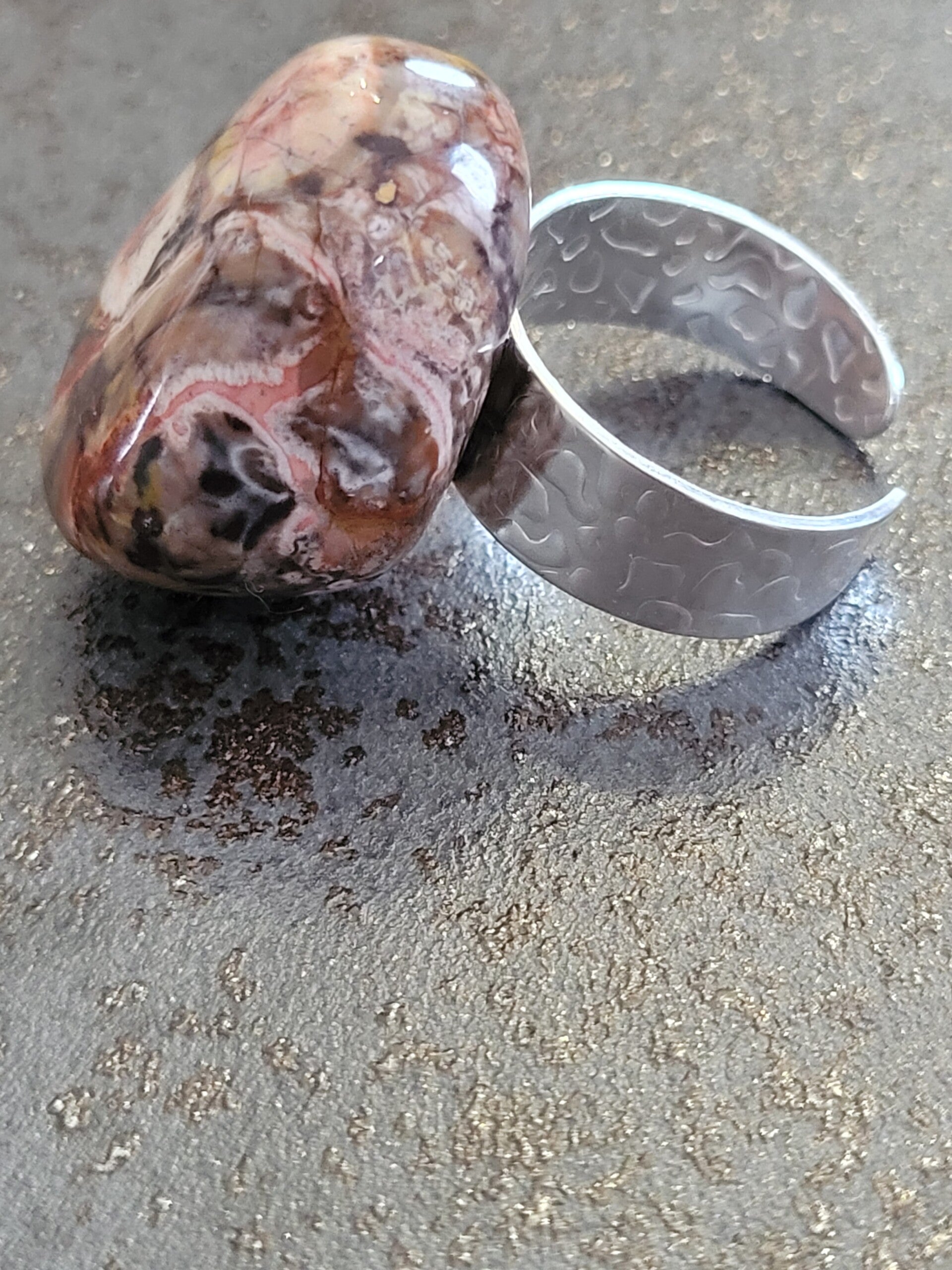 Bague ajustable en Argent925 montée d'une pierre de Jaspe Ocelles en forme Libre