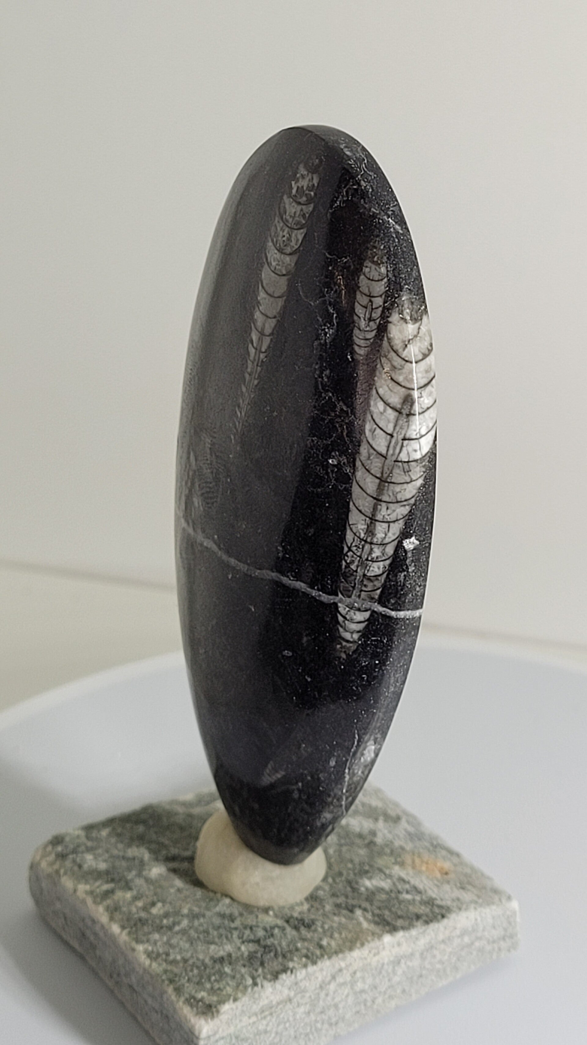 Orthoceras est le nom donné à un genre de céphalopodes marins éteints qui vivaient à l'époque paléozoïque, en particulier aux périodes ordovicienne et silurienne, il y a environ 488 à 443 millions d'années. Le nom « Orthoceras » est dérivé des mots grecs « orthos », qui signifie droit, et « keras », qui signifie corne, qui font référence aux coquilles longues, droites et en forme de cône caractéristiques de ces créatures anciennes.