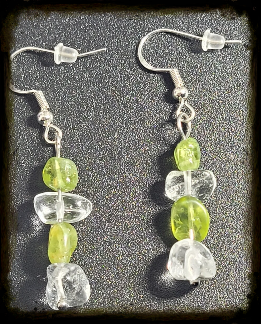 Paire de Boucles d'oreilles en Péridot et Cristal de roche